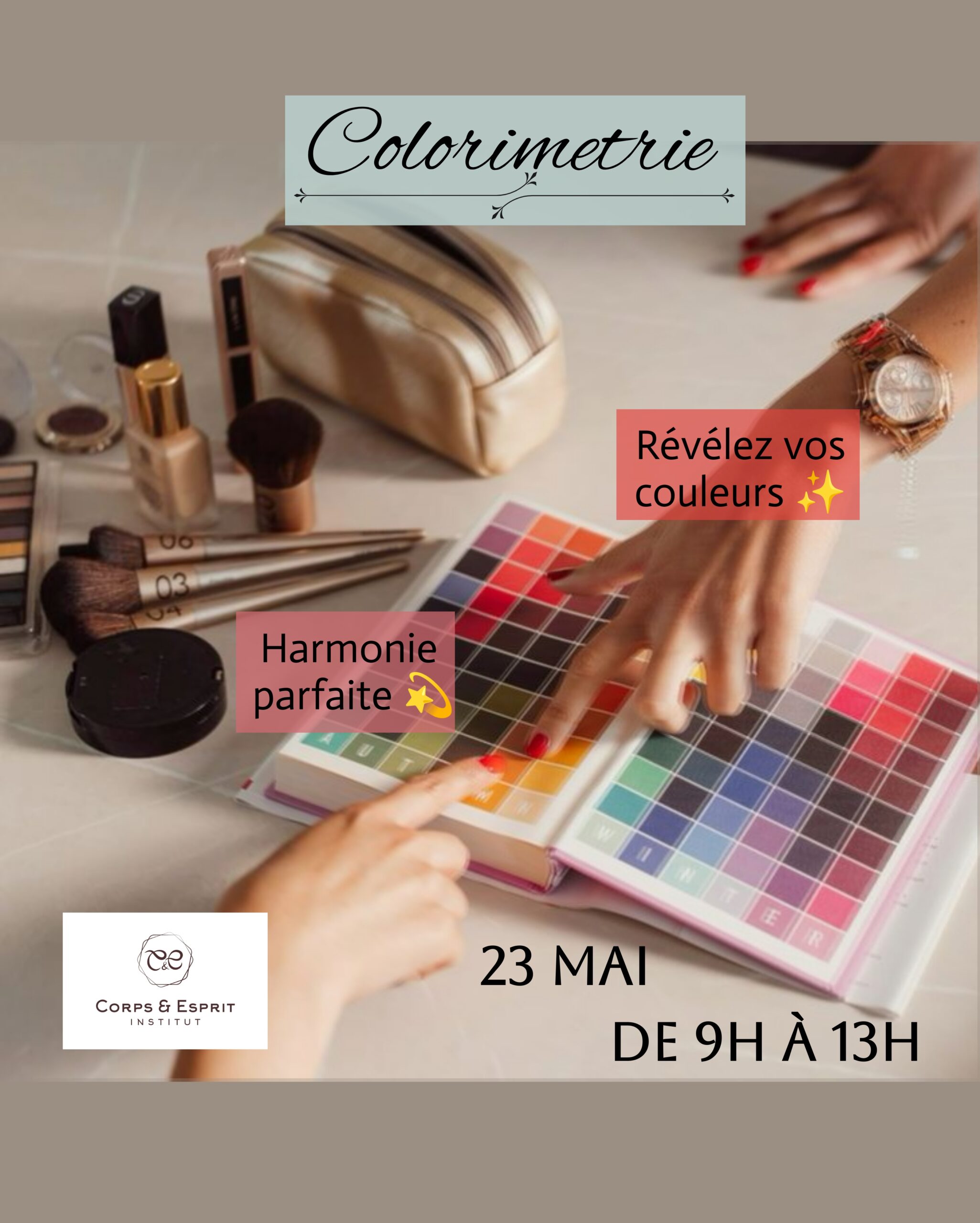 Le 23 mai de 9h à 13h, l’institut Corps & Esprit à Parthenay vous propose une matinée dédiée à la colorimétrie. La colorimétrie consiste à déterminer les couleurs qui mettent naturellement en valeur votre teint, vos yeux et vos cheveux. Grâce à cette analyse, vous pourrez choisir plus facilement : Un moment convivial pour mieux comprendre votre palette de couleurs et gagner en confiance dans vos choix beauté et style. Participation : 55 €